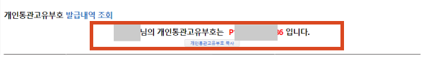 관세청에서 개인정보 보호를 위해 도입한 특별 식별코드라고 이해하시면 되는데