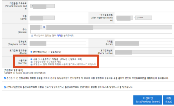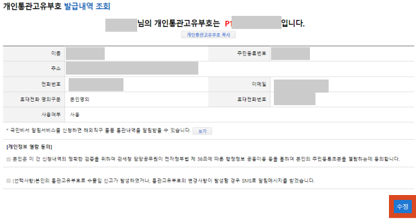 개인통관고유부호에 등록되어 있는 연락처 정보는 최신 상태로 유지하는 것이 좋으며,