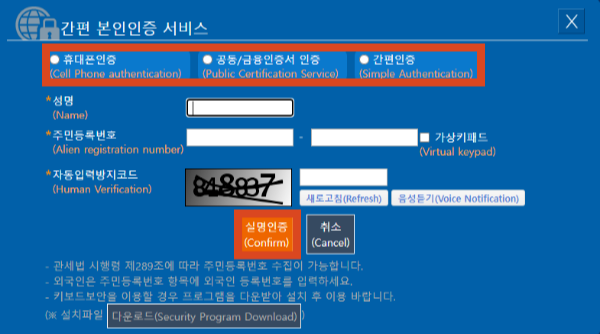 본인 인증 방법