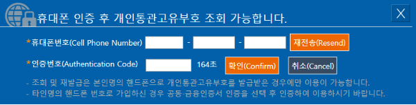 본인인증을 휴대폰 인증으로 진행할 때는 본인 명의의 휴대폰으로 개인통관고유부호를