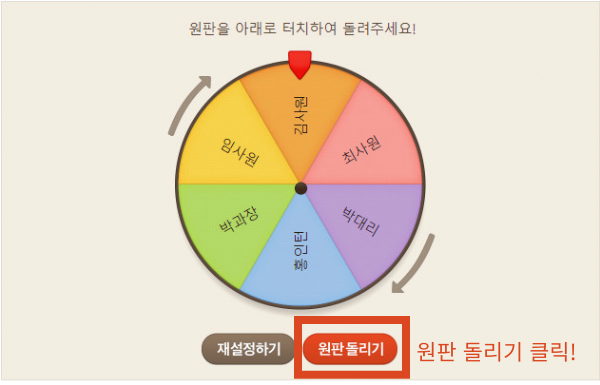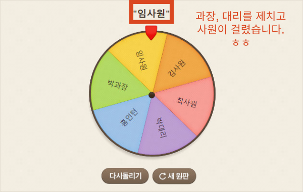 원판을 클릭하면 설정한 옵션 중 하나가 무작위로 선택되는 개념입니다.