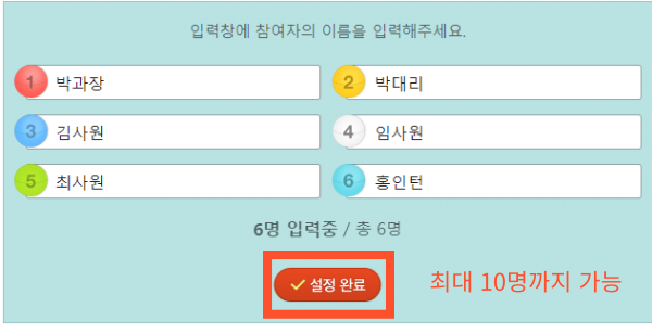 - 참가자 이름과 당첨 항목을 모두 기재합니다.(빈칸 없이 모두 입력)