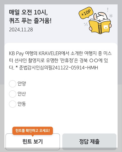 매일 정답을 확인하며 다양한 혜택을 즐길 수 있습니다.😊