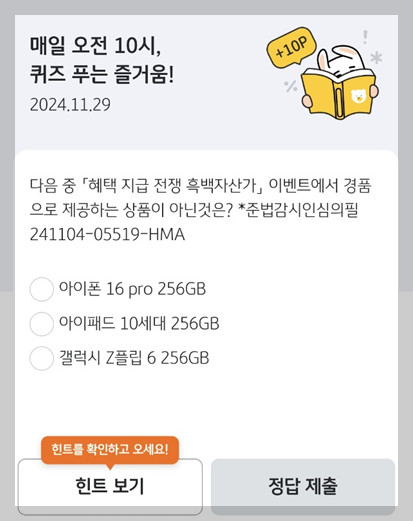 매일 정답을 확인하며 다양한 혜택을 누릴 수 있는 이벤트입니다.😊