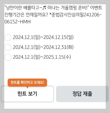 ""낭만이란 배를타고! 떠나는 겨울캠핑 준비!" 이벤트 진행기간은 언제일까요?