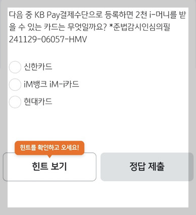 "다음 중 KB Pay결제수단으로 등록하면 2천i-머니를 받을 수 있는 카드는 무엇일까요?