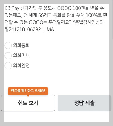 "KB Pay 신규가입 후 응모시 OOOO 100엔을 받을 수 있는데요, 전 세계 56개국 통화를