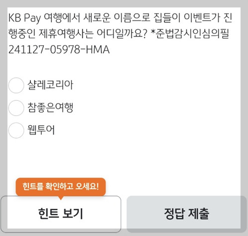 퀴즈는 매일 오전 10시에 갱신되며, KB PAY 앱에서도 참여할 수 있습니다.