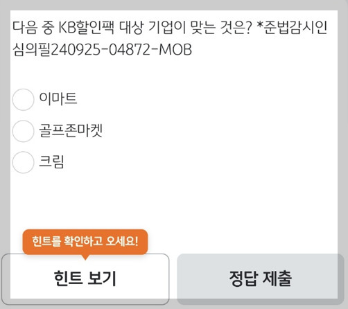 "다음 중 KB할인팩 대상 기업이 맞는 것은? *준법감시인심의필240925-04872-MOB"