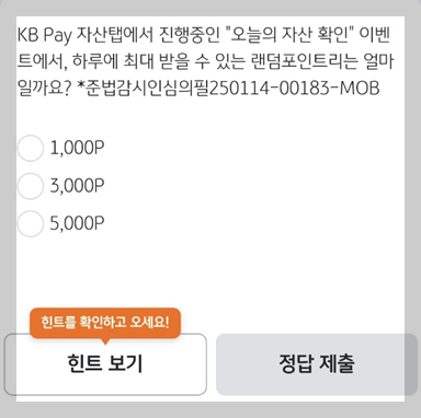 "KB Pay 자산탭에서 진행중인 "오늘의 자산 확인" 이벤트에서,