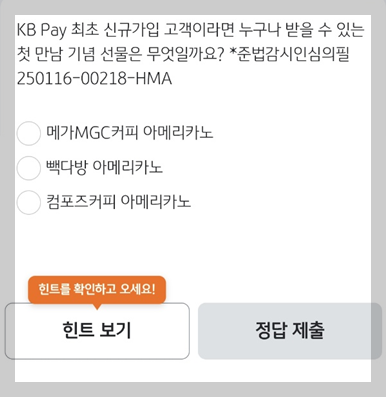 "KB Pay 최초 신규가입 고객이라면 누구나 받을 수 있는 첫만남 기념 선물은