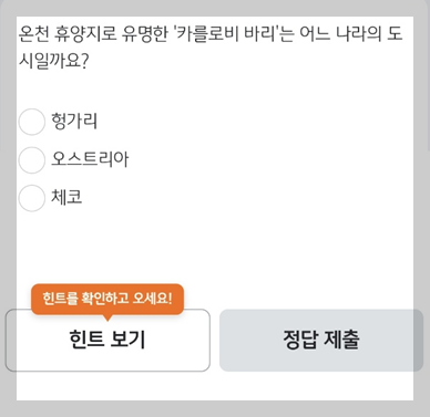 "온천 휴양지로 유명한 '카를로비 바리'는 어느 나라의 도시일까요?"
