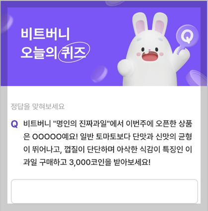 👉 지금 바로 비트버니 퀴즈에 참여하고 포인트를 알차게 적립하세요! 🎁