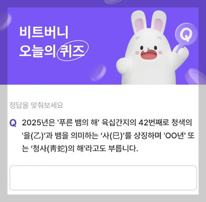 비트버니 오늘의 퀴즈는 매일 새로운 문제를 풀며 포인트를 적립할 수 있는 흥미로운 이벤트입니다.