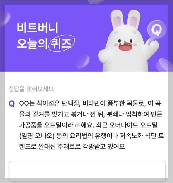 비트버니의 **[오늘의 퀴즈]**는 매일 포인트를 적립할 수 있는 재미있는 기회를 제공하고 있으니,