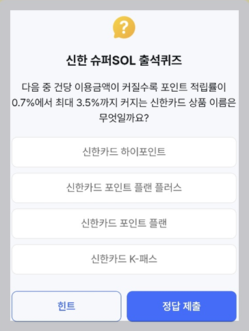 ▣ 신한슈퍼 SOL 출석퀴즈 🗓️