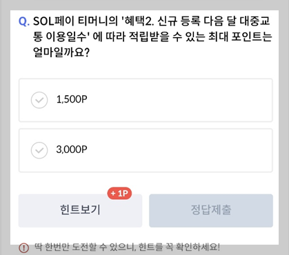 Q. "SOL페이 티머니의 '혜택2. 신규 등록 다음 달 대중교통 이용일수'에 따라