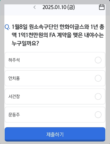 Q. "1월8일 원소속구단인 한화이글스와 1년 총액 1억 1천만원의 FA계약을