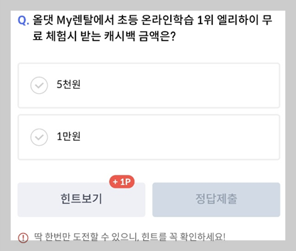 Q. "올댓 My렌탈에서 초등 온라인학습 1위 엘리하이 무료 체험 시 받는