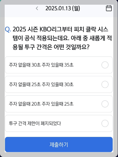 Q. "2025 시즌 KBO리그부터 피치 클락 시스템이 공식 적용되는데요.
