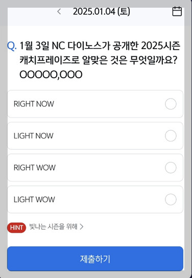 Q. "1월 3일 NC 다이노스가 공개한 2025시즌 캐치프레이즈로