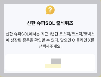◈ 신한슈퍼 SOL 출석퀴즈 ◈