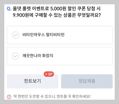 Q. "올댓 룰렛 이벤트로 5,000원 할인 쿠폰 당첨 시 9,990원에 구매할 수 있는