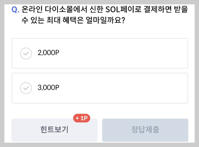 쏠퀴즈에 참여하여 정답을 맞히면 마이신한포인트 3~ 1,000P가 즉시 적립되며,