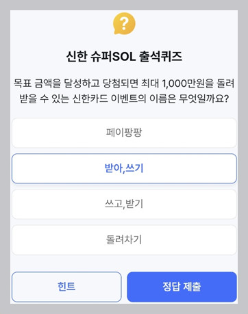 ◈ 신한슈퍼 SOL 출석퀴즈 ◈