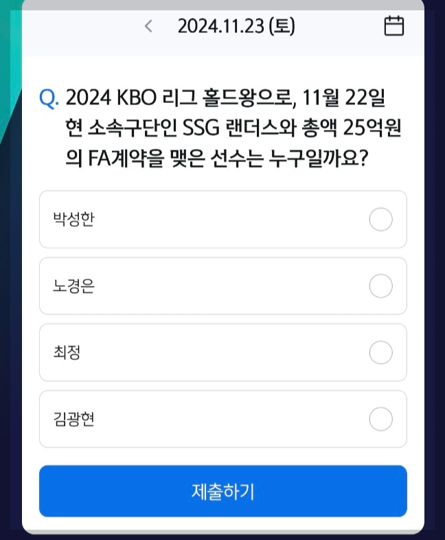 11월 23일 쏠퀴즈 정답을 공유하겠습니다.