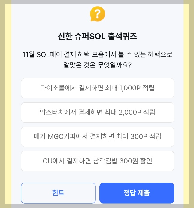 ◈ 신한 SOL페이 퀴즈팡팡 ◈