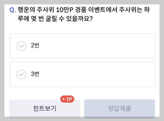 Q. "행운의 주사의 10만P 경품 이벤트에서 주사위는 하루에