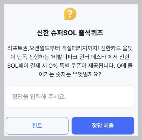 ▷ 신한슈퍼 SOL 출석퀴즈