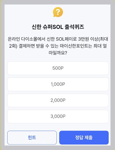 ▷ 신한슈퍼 SOL 출석퀴즈
