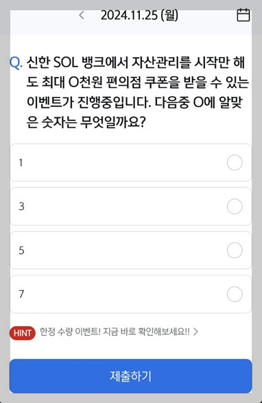 신한 쏠 퀴즈는 신한은행이 주관하는 하루 단위 이벤트로,