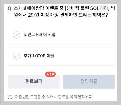 Q. "스페셜페이팡팡 이벤트 중 [찬바람 불땐 SOL페이] 병원에서 2만원 이상 매장 결제하면
