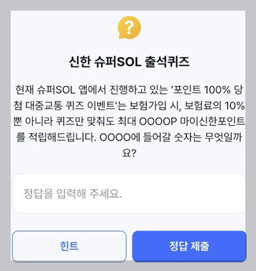 보험가입 시 , 보험료의 10%뿐 아니라 퀴즈만 맞춰도 최대 OOOOP 마이신한포인트를