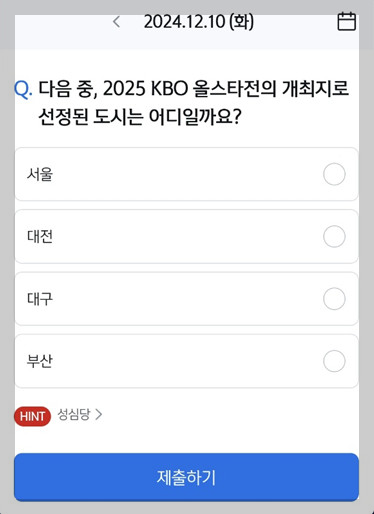 Q. "다음 중, 2025 KBO 올스타전 개최지로 선정된 도시는 어디일까요?"