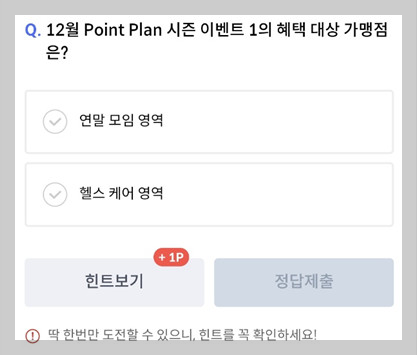 Q. "12월 Point Plan 시즌 이벤트 1의 혜택 대상 가맹점은?"