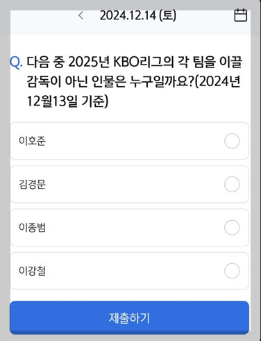 Q. "다음 중 2025년 KBO리그의 각 팀을 이끌 감독이 아닌 인물은 누구일까요?