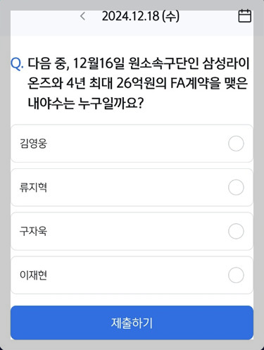 Q. "다음 중, 12월 16일 원소속구단인 삼성라이온즈와 4년 최대 26억원의 FA계약을 맺은