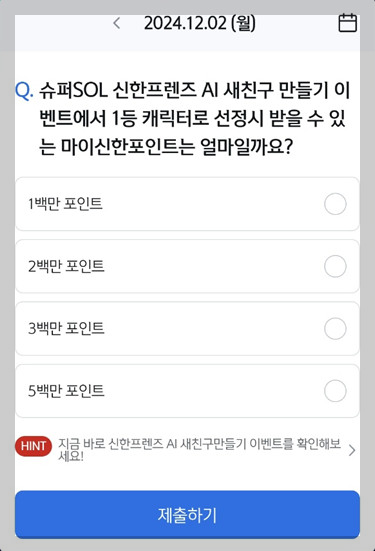 ▷ 신한슈퍼 SOL 출석퀴즈