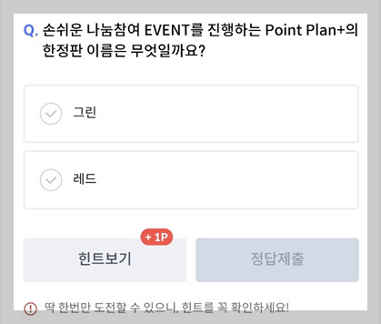 Q. "손쉬운 나눔참여 EVENT를 진행하는 Point Plan+의 한정판 이름은 무엇일까요?"