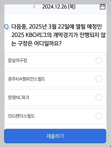 Q. "다음중, 2025년 3월 22일에 열릴 예정인 2025 KBO리그의 개막경기가 진행되지 않는