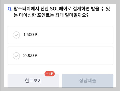 Q. "맘스터치에서 신한 SOL페이로 결제하면 받을 수 있는 마이 신한 포인트는