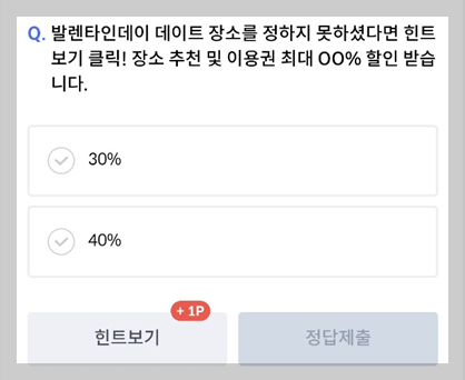Q. "발렌타인데이 데이트 장소를 정하지 못하셨다면 힌트보기 클릭!