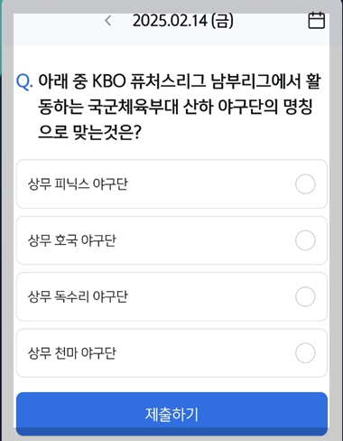 Q. "아래 중 KBO 퓨처스리그 남부리그에서 활동하는 국군체육부대
