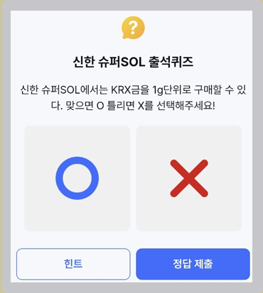 Q. "신한 슈퍼SOL에서는 KRX금을 1g단위로 구매할 수 있다.