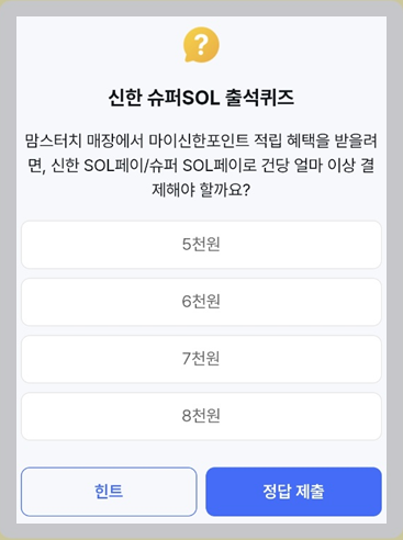 ▣ 신한슈퍼 SOL 출석퀴즈 🗓️