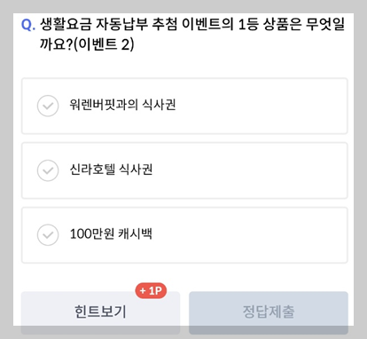 Q. "생활요금 자동납부 추첨 이벤트의 1등 상품은 무엇일까요?(이벤트 2)"